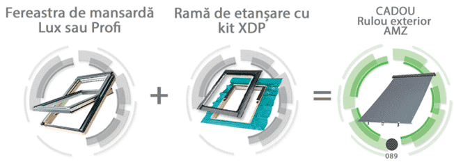 • fereastra de mansarda Fakro Profi sau Lux + o rama de etansare cu Kit XDP sau rama EHV-AT Thermo