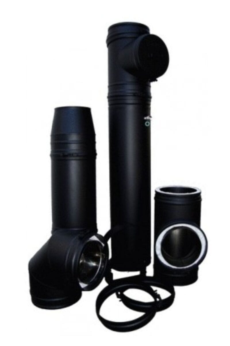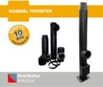 SCHIEDEL Permeter este un cos de fum triplustrat compus dintr-un perete interior de 0,5 mm grosime, realizat din otel inoxidabil, termoizolatie de 25 mm grosime din vata bazaltica cu densitatea de 128 kg/mc, si un perete exterior de 0,6 mm grosime din tabla de otel vopsita in camp electrostatic in culoare neagra.