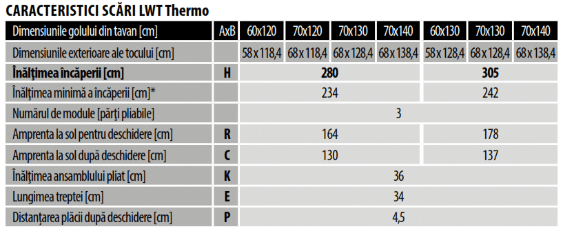 Specificație tehnică FAKRO LWT Thermo: