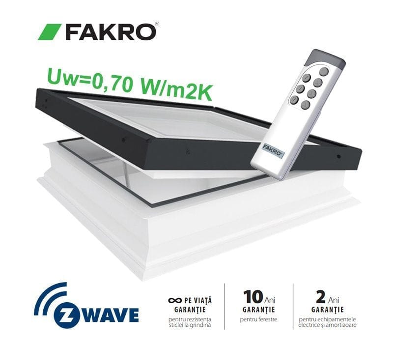 Formele special proiectate ale profilelor oferă o suprafaţă vitrată cu până la 16% mai mare, comparativ cu cea a ferestrelor similare fabricate de alţi producători.- Ferestre acționate electric prin intermediul sistemului Z-Wave. Dotate cu senzor de ploaie. Telecomanda achizitionata separat. Deschiderea cercevelei: 15 cm.