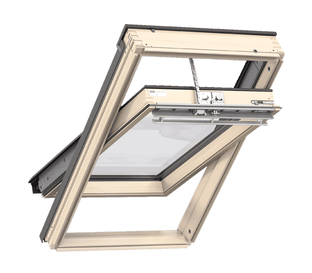 Fereastra de mansardă cu articulare mediană VELUX GLL cu acționare solară este o soluție care nu necesită cabluri și care
