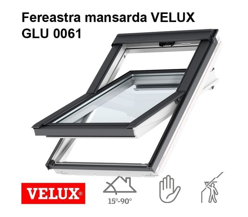 VELUX GLU 0061 este fereastra noastră cu miez de lemn învelit în poliuretan, cu geam termoizolant alcătuit din 3 foi de sticlă. Este modelul care nu necesită întreținere.