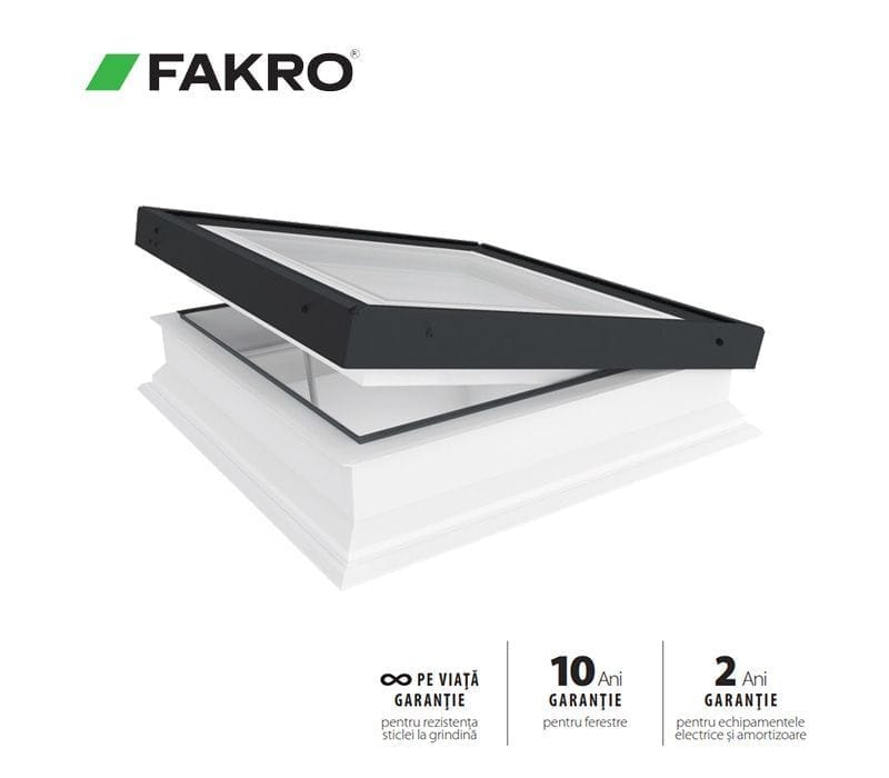 Ferestrele FAKRO DMF pentru acoperiș terasă au un aspect elegant, modern și sunt caracterizate prin parametri excelenți de izolare termică. Structura este asemănătoare cu cea a ferestrelor cu cupolă, principala diferență fiind tipul geamului utilizat și tehnologia modernă utilizată pentru lipirea acestuia, rezultatul fiind un aspect estetic și inovator.
