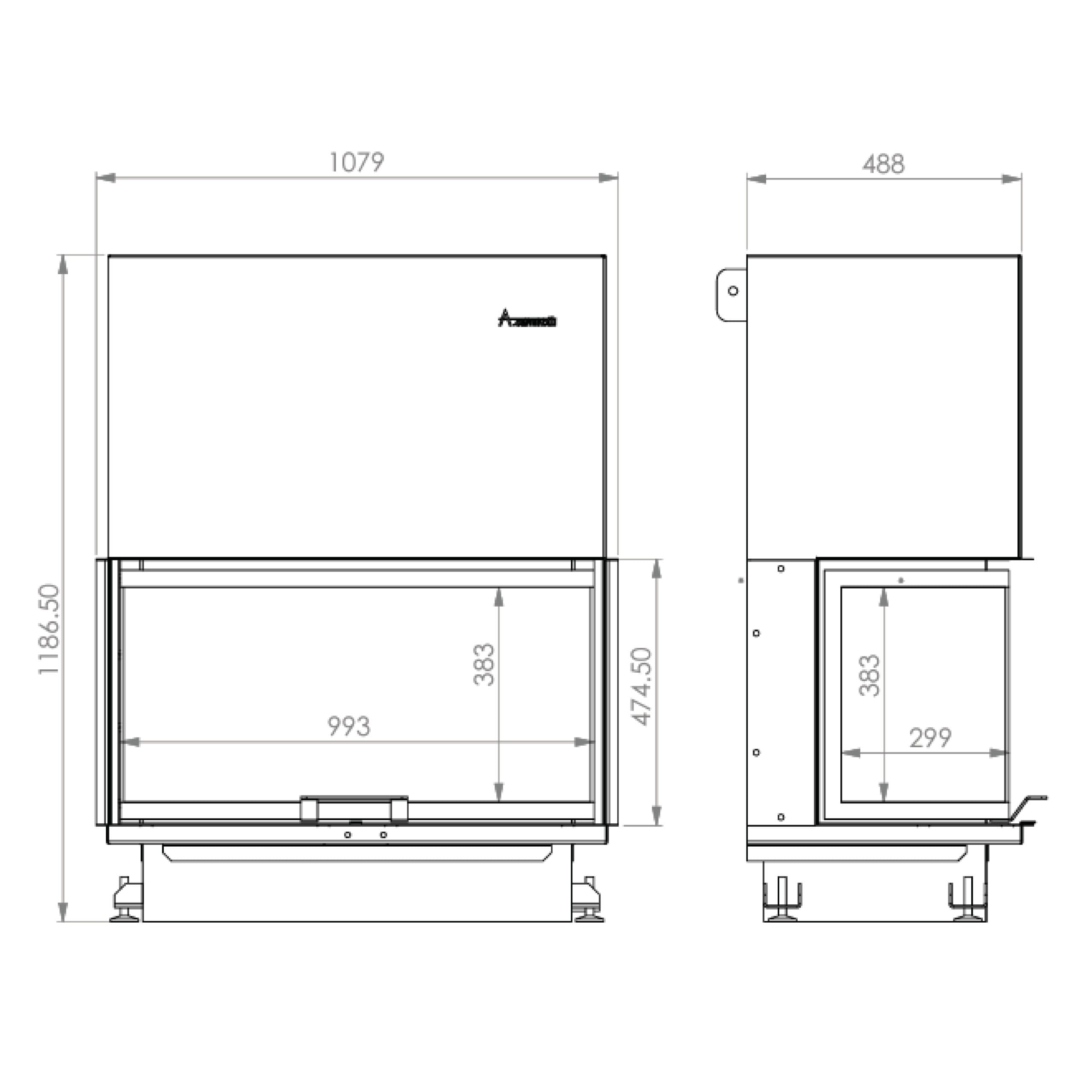 Focar de șemineu – A.Caminetti Crystal 110 ECO Series – Geam panoramic 3 suprafețe vitrate, 18 KW, randament ≥70%, încorporabil, Garanție 5 ani.