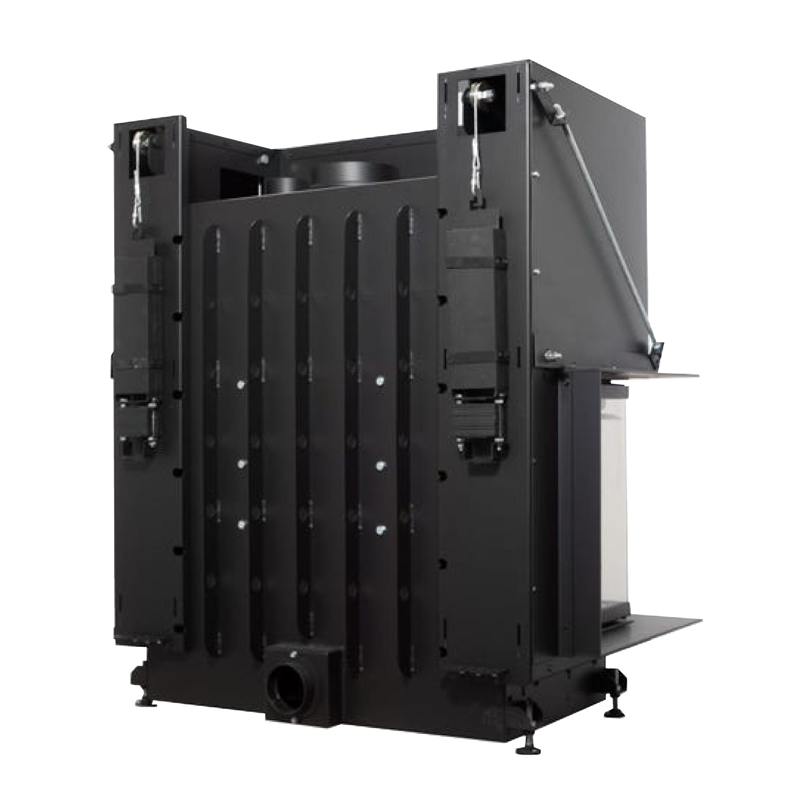 Crystal 80 MAX vine echipat cu două ieșiri pentru distribuția aerului cald, fiecare cu diametrul de 100 mm. Acestea permit conectarea unor tubulaturi speciale pentru a transporta căldura în mai multe camere, transformând șemineul într-o sursă de încălzire eficientă pentru întreaga locuință. Astfel, se reduce consumul de combustibil și se îmbunătățește confortul termic general.