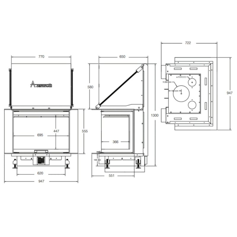 Focar de șemineu – A.Caminetti Crystal 80 MAX German Edition – Geam panoramic 3 suprafețe vitrate, 13 KW, randament 85%, încorporabil, Garanție 5 ani.