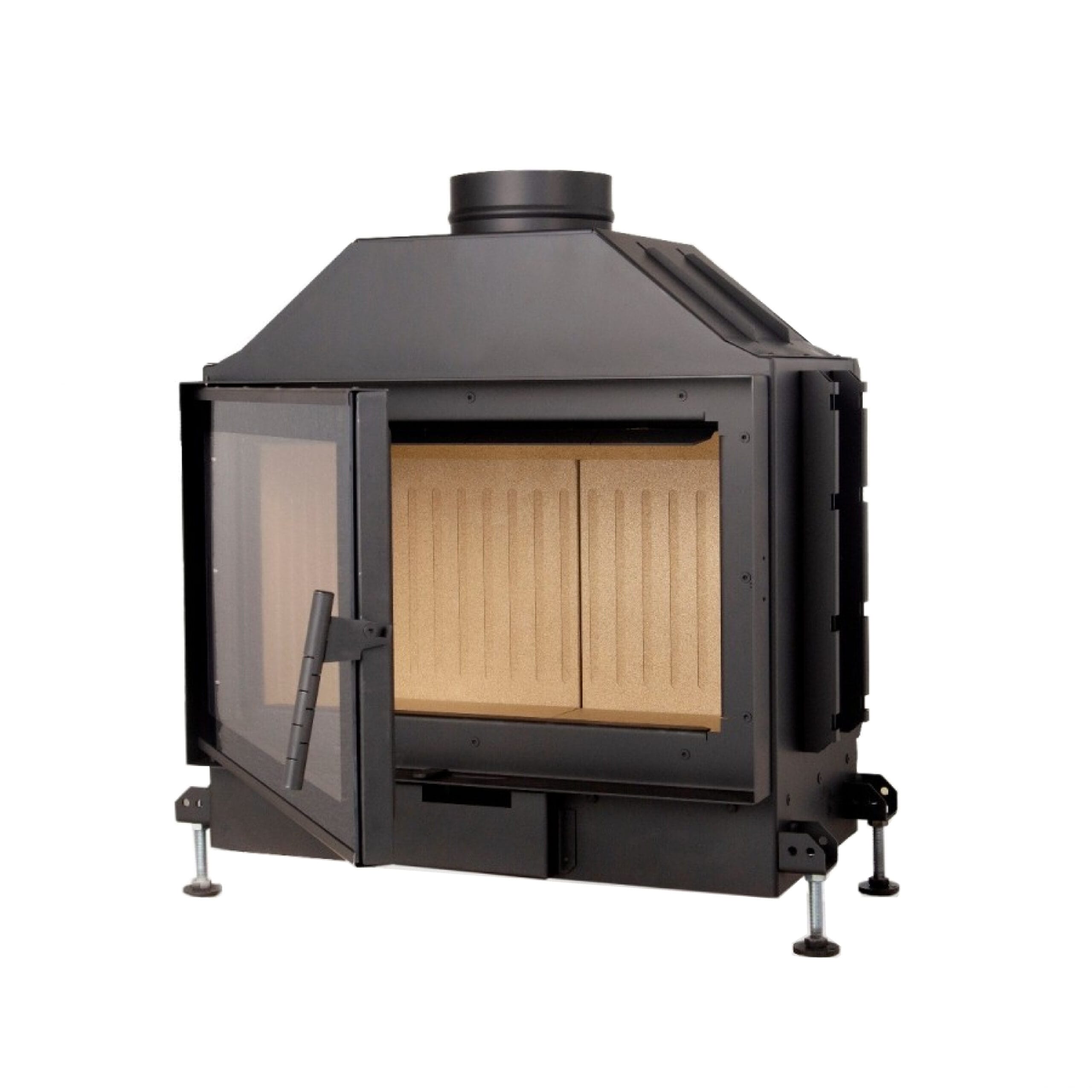 Construcție compactă și o greutate redusă – Cu o greutate de doar 91 kg, acest focar este printre cele mai ușoare din seria Flat. Este realizat din oțel termorezistent și căptușit la interior cu vermiculită – un material care menține eficient căldura și crește performanța de ardere. Datorită greutății reduse, este ideal pentru spații unde structura de susținere este mai puțin rezitentă.