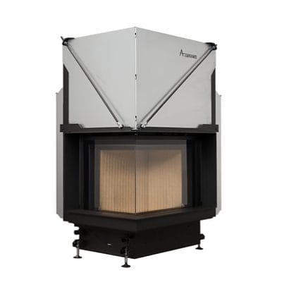 Focar de șemineu – A.caminetti Quattro 70 L Premium Edition – Colț panoramic stânga (L), 2 suprafețe vitrate, 13 KW, randament >80%, încorporabil, Garanție 5 ani.
