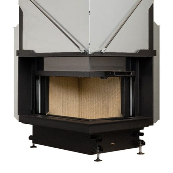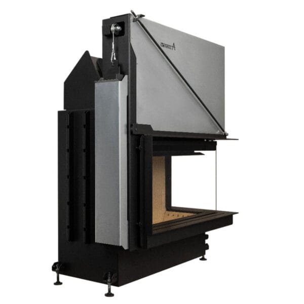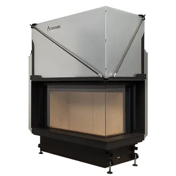 Focar de șemineu – A.caminetti Quattro 90 R Premium Edition – Colț panoramic dreapta (R), 2 suprafețe vitrate, 14.8 KW, randament >80%, încorporabil, Garanție 5 ani.