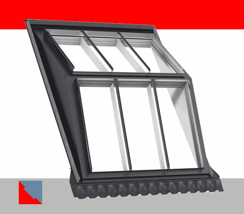- Lucarna este disponibilă în combinații de câte 6(3×2) ferestre de mansardă VELUX achizitionate separat.