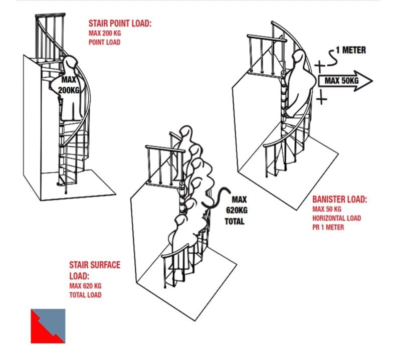 Scara este conformă cu standardele europene actuale de construcție definite în EN 1991 și EN 1993.< /p>