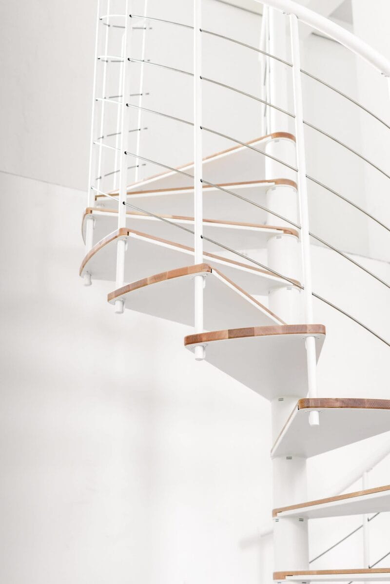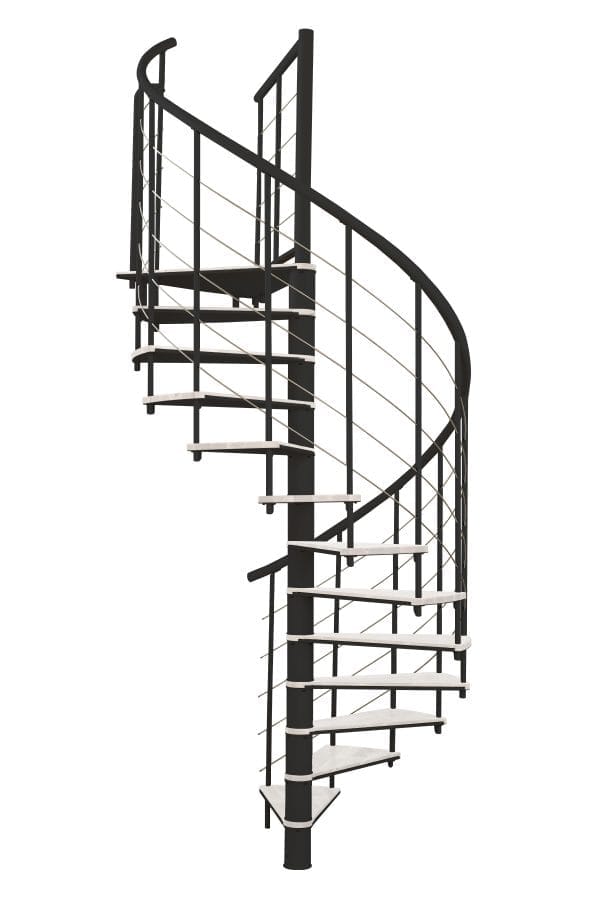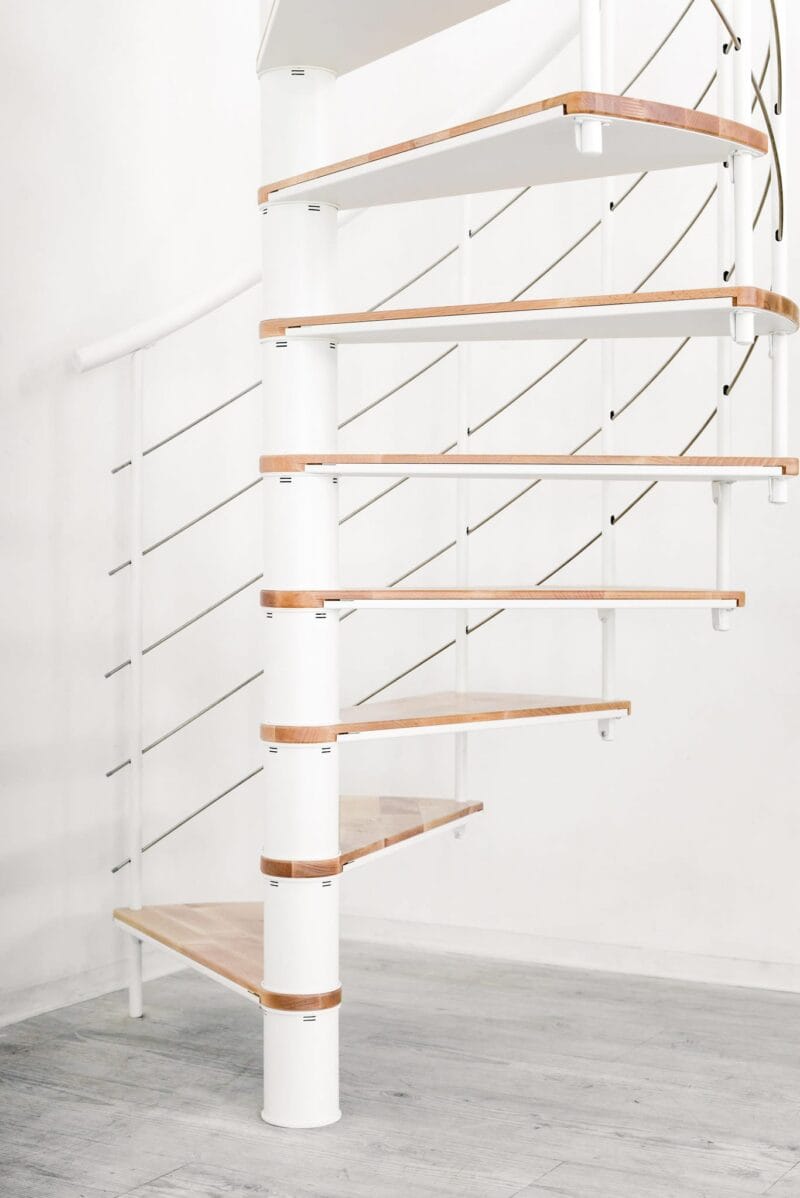 Scara spirală Fusion are trepte cu adevărat speciale: acestea sunt realizate pe jumătate din lemn masiv și pe jumătate din oțel vopsit în câmp electrostatic. Treptele pot fi montate fie cu partea metalică, fie cu partea din lemn orientată în sus. În funcție de suprafața preferată pentru locuința ta, ai opțiuni individuale de design cu scara spirală Fusion.