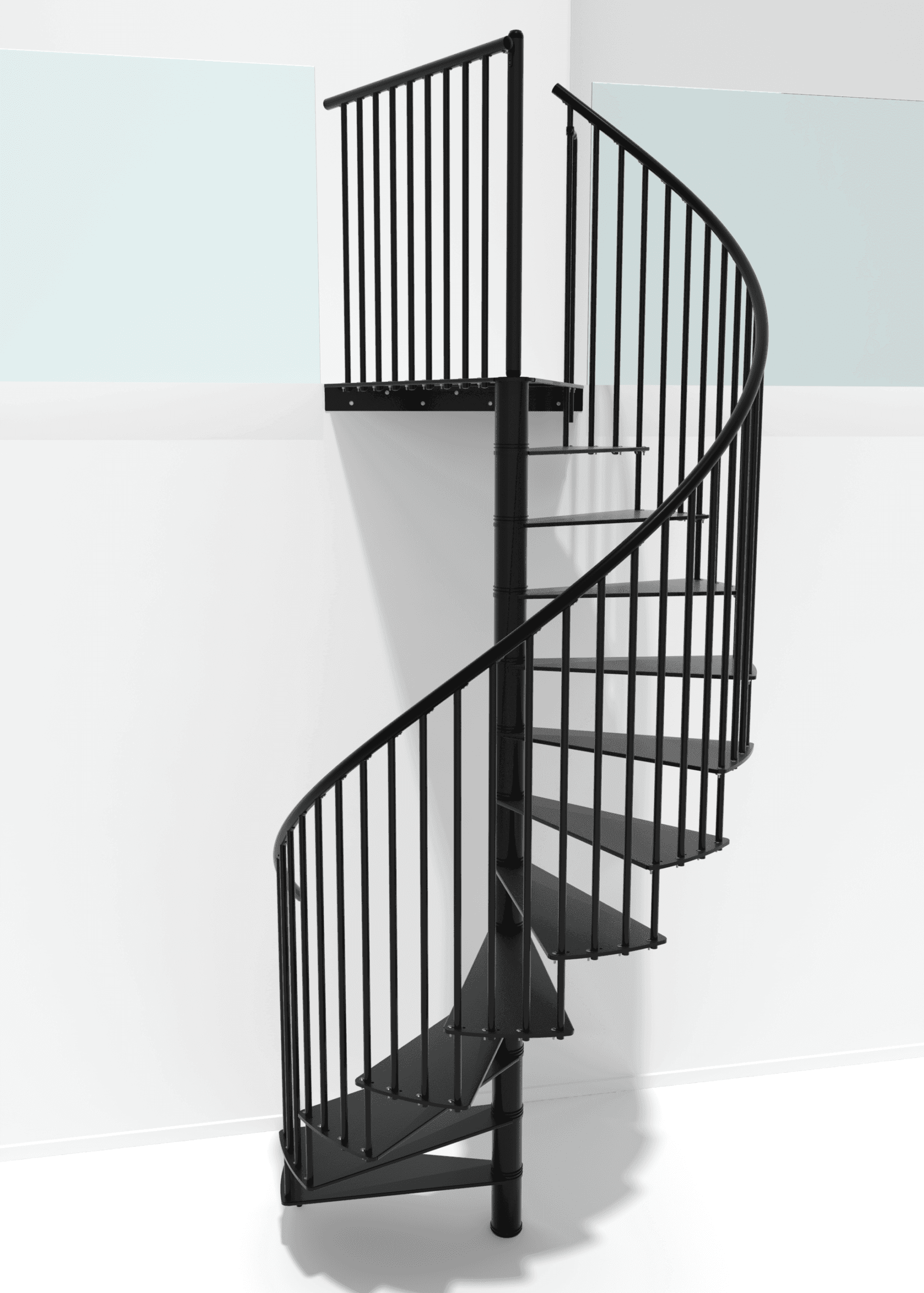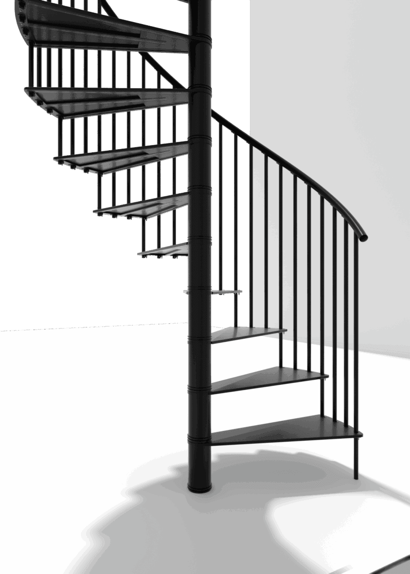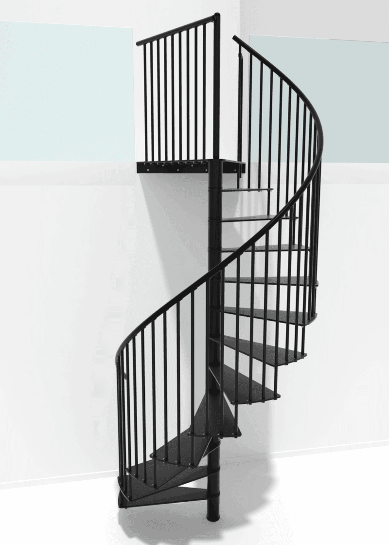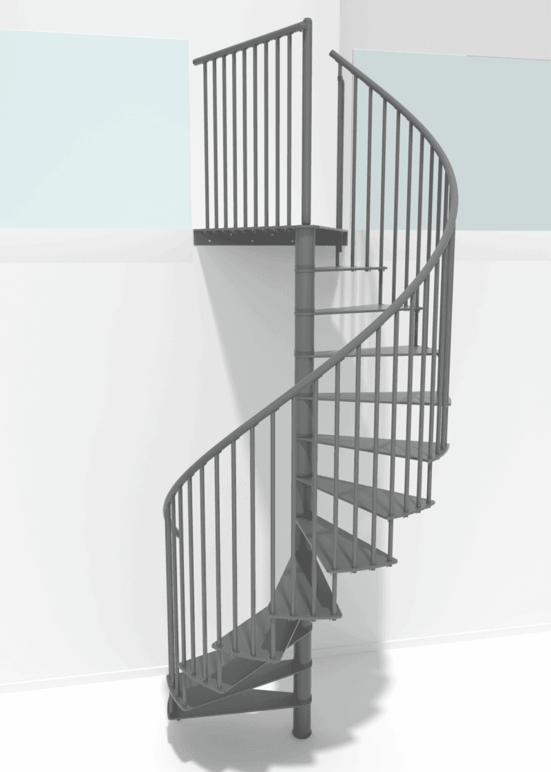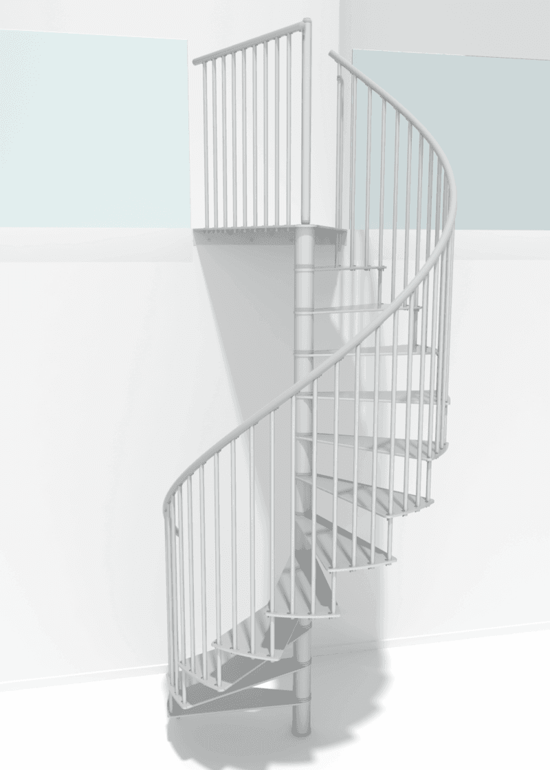 Scara spirală metalică Portofino îmbină cu măiestrie eleganța și stabilitatea. Deși treptele sunt plate, ele sunt realizate din oțel vopsit în câmp electrostatic și sunt extrem de rezistente. Suprafața ușor rugoasă a treptelor previne riscul de alunecare la urcare. Balustrada de 1 m înălțime și mâna curentă din PVC de înaltă calitate asigură siguranță deplină pentru toți utilizatorii.