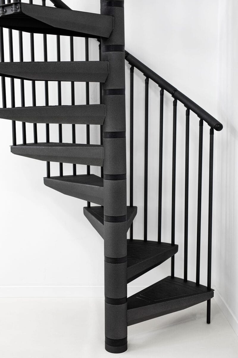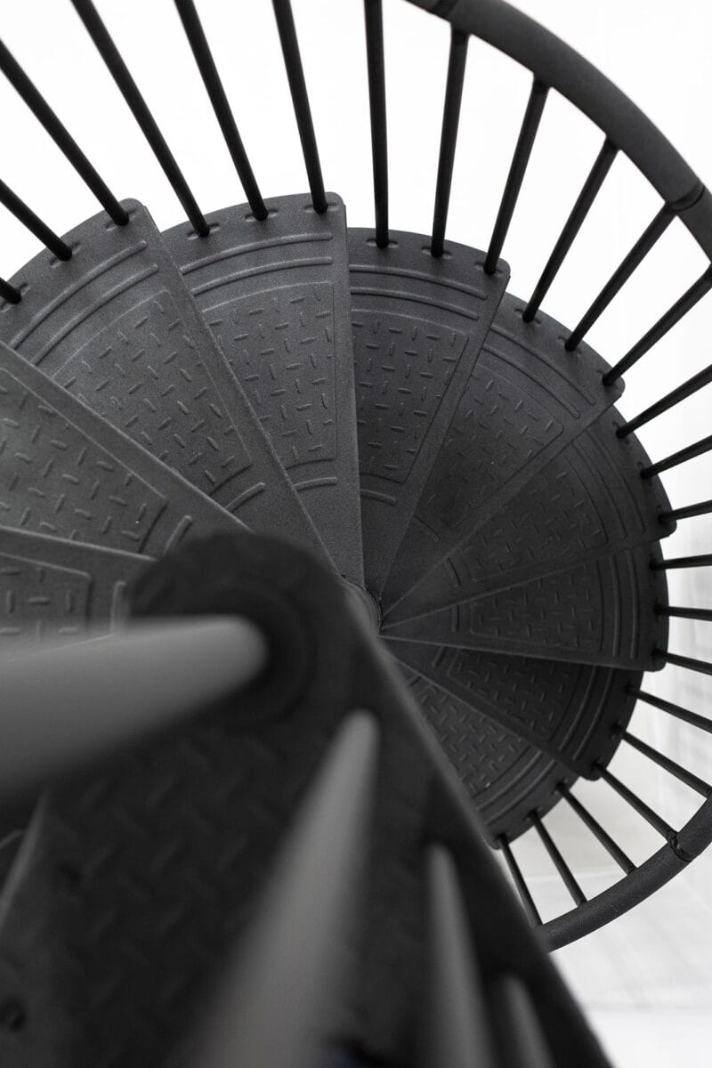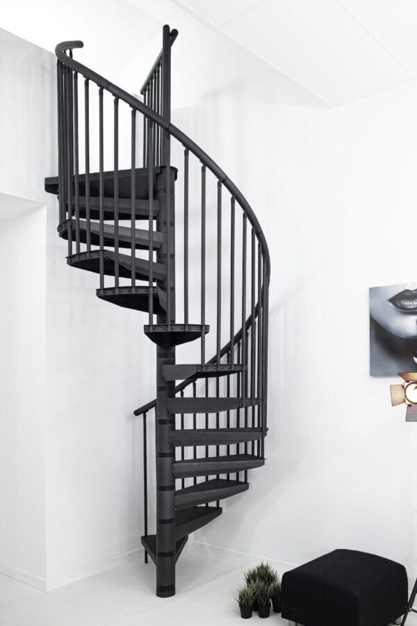Scara spirală Rondo Color este un accesoriu modern și practic pentru spațiul de locuit. Cu treptele sale din oțel perforat, prevăzute cu mici protuberanțe și culoarea închisă, se potrivește perfect în locuințele decorate în stil industrial. Totodată, Rondo Color este un element de atracție și pentru interioarele amenajate mai simplu.