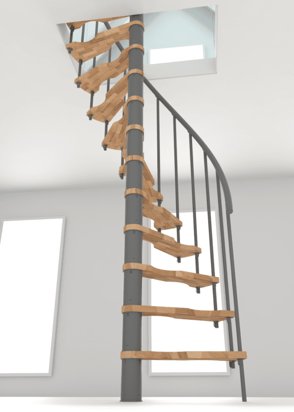 Scara spirală Suono Smart este una dintre cele mai mici scări spirală din gama Minka. Marele avantaj al acestei scări este faptul că poate fi instalată și în deschideri de plafon pentru accesul la mansardă. Astfel, este soluția ideală pentru oricine caută o variantă deosebit de economă în spațiu pentru a ajunge la etajul superior. Datorită balustradei stabile din PVC, Suono Smart este alegerea perfectă mai ales pentru amenajările de tip mansardă.