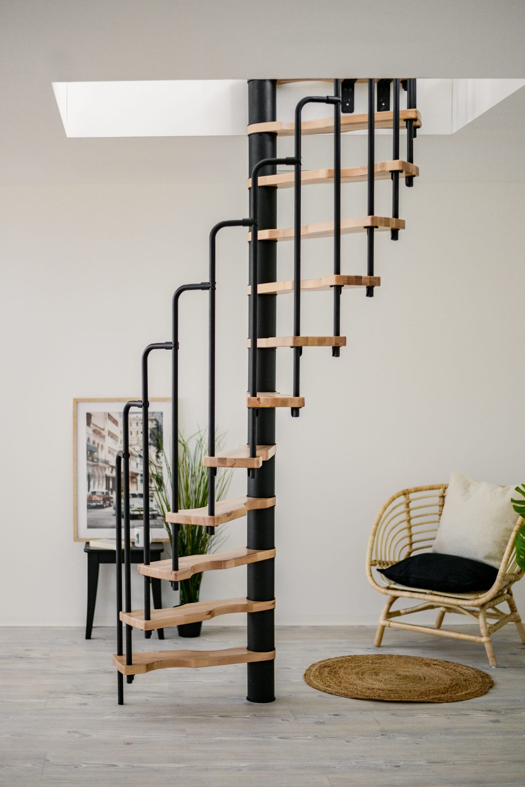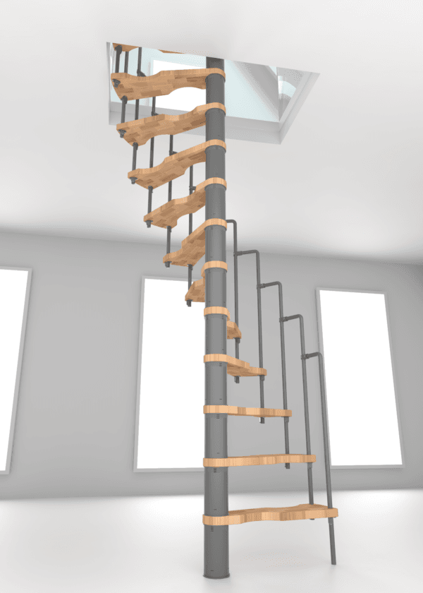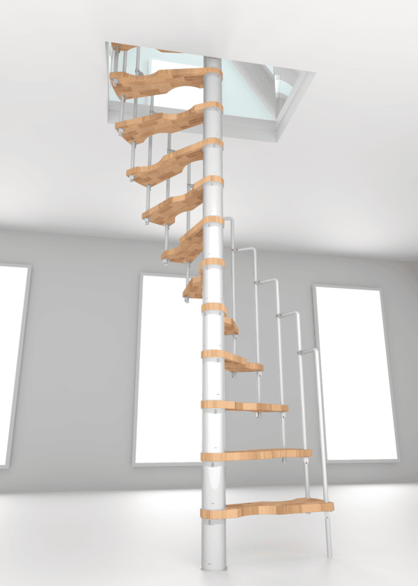 Dacă ești în căutarea unei scări spirală cât mai economice din punct de vedere al spațiului, Suono este o alegere excelentă. Poate fi instalată în deschideri de plafon foarte mici, ceea ce o face soluția perfectă pentru mansardări sau renovări. Totuși, Suono nu este doar practică, ci și atrăgătoare. Treptele din lemn și balustrada elegantă creează un aspect extraordinar care îmbogățește orice spațiu de locuit.