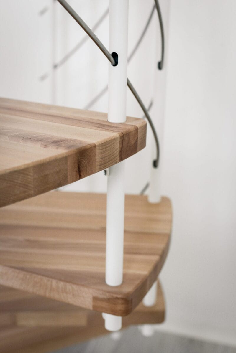 Scara spirală Venezia Smart aduce în locuința ta aerul ușor și elegant al designului italian. Combinația dintre treptele înguste din lemn și grinzile inferioare curbate conferă scării un aspect dinamic și modern. Datorită gamei variate de tipuri de lemn și culori metalice, Venezia Smart se potrivește perfect în numeroase stiluri de amenajare interioară. Balustrada din PVC face ca Venezia Smart să fie alegerea ideală pentru cei care apreciază o suprafață plăcută la atingere și un preț mai accesibil.