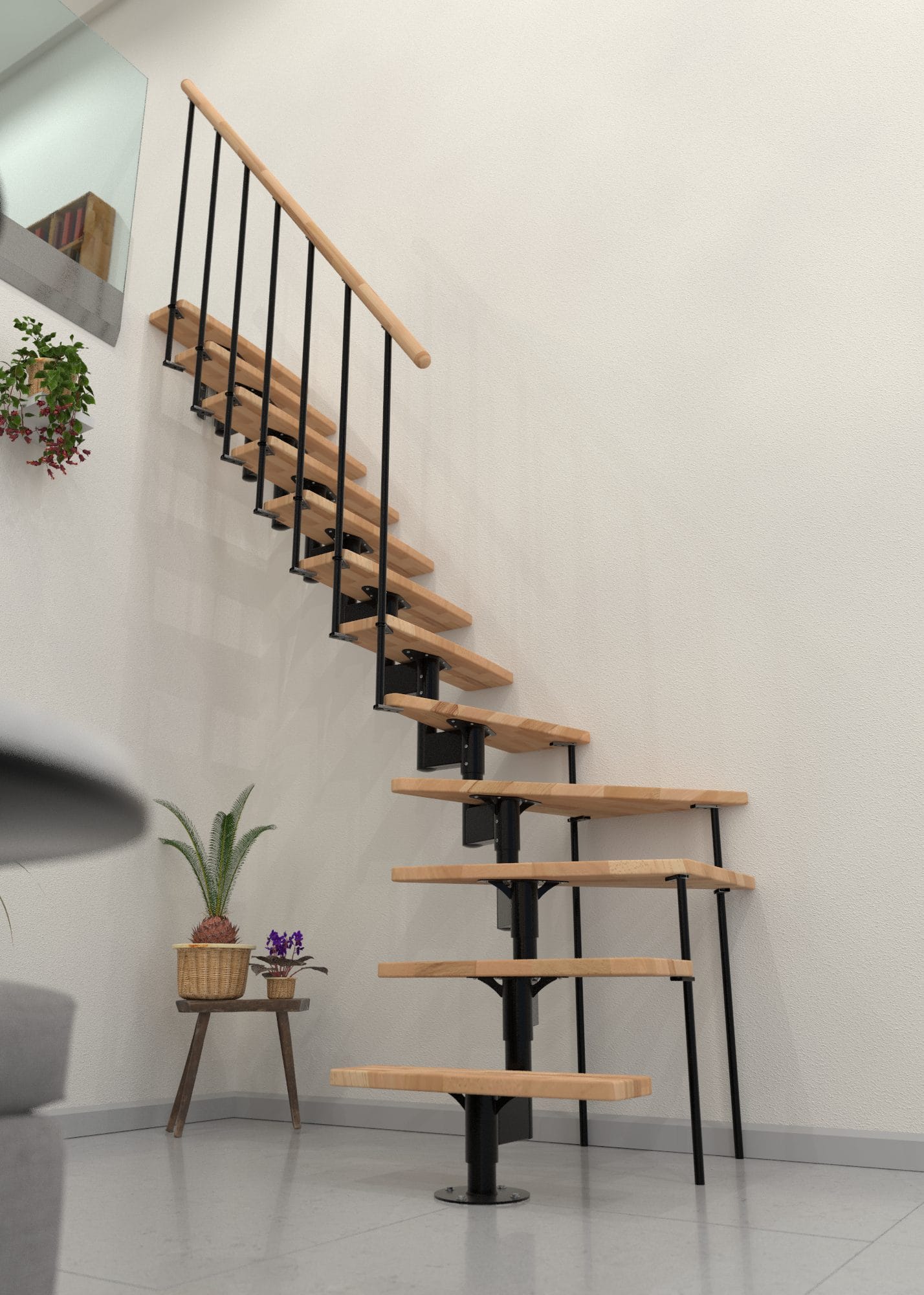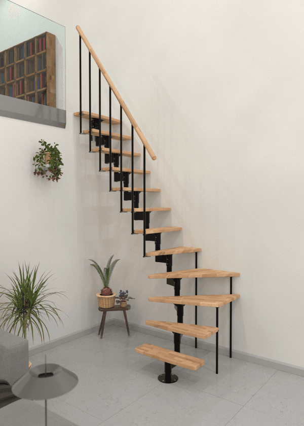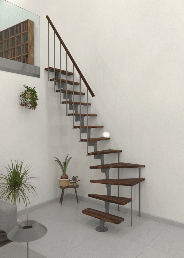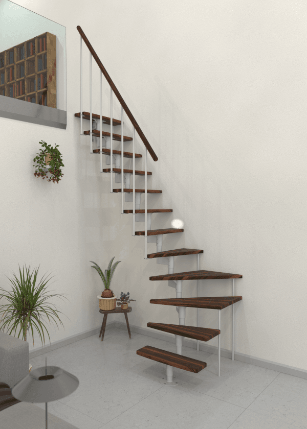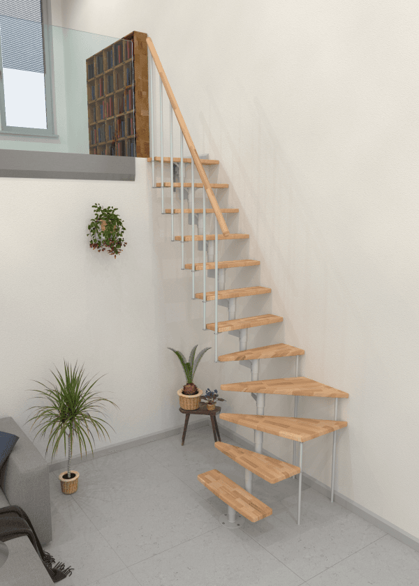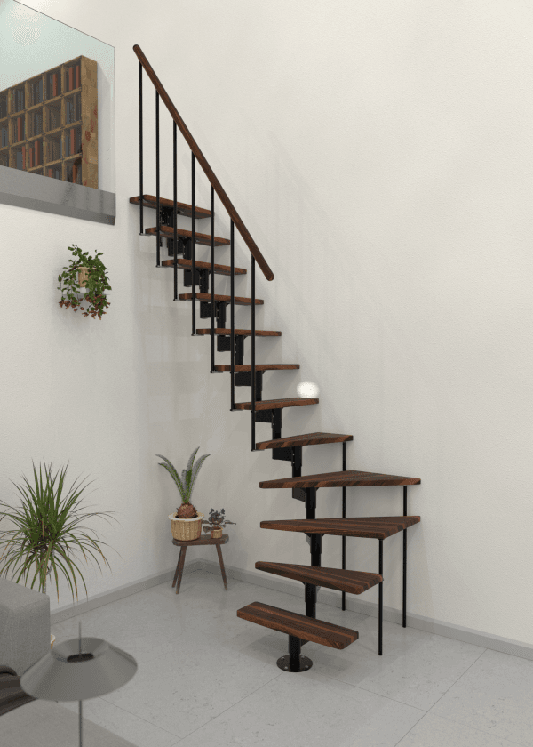 Joker Turn este o scară economisitoare de spațiu, cu întoarcere la 90°, ce îmbină armonios metalul și lemnul. Treptele dreptunghiulare oferă un mers confortabil, iar mâna curentă din lemn masiv este plăcută la utilizare. Cadru din oțel și barele balustradei asigură stabilitatea necesară la urcare.