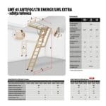 Scara pod FAKRO LTK Energy, alcătuită din 3 sau 4 părți pliabile, este extrem de eficientă energetic. Având parametrii de izolare foarte buni și cea mai înaltă clasă de etanșeitate (clasa 4), scara LTK Energy asigură un excelent nivel de confort termic în locuință.
