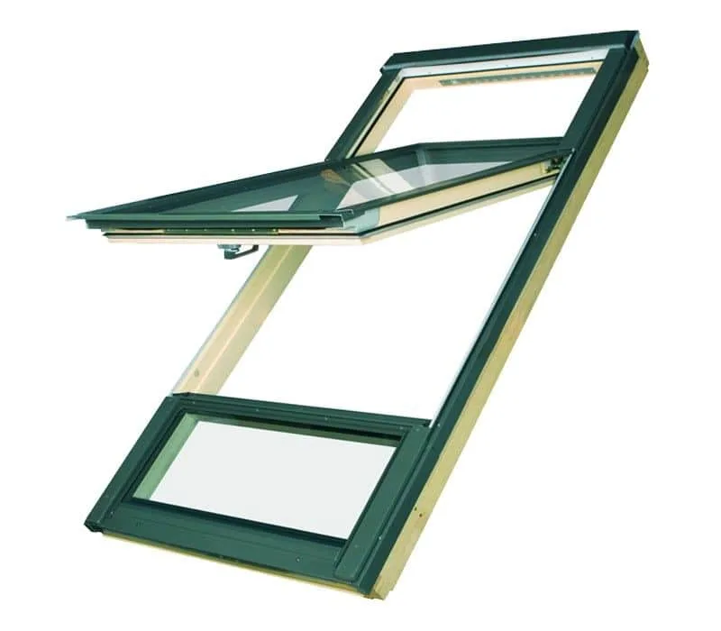 Pivotarea ferestrelor la o înălţime mai mare (deasupra liniei mediane), ajutată de sistemul performant de balamale (patent FAKRO), permite ca partea de jos să ofere avantajele ferestrelor cu dublă articulare, în timp ce partea de sus oferă o luminare suplimentară.
