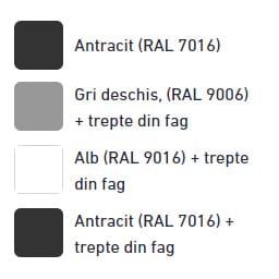 Scara in spirala Calgary de la DOLLE este o scară în spirală distinctivă. Rezolvă cerința unei legături între etaje cu spațiu foarte mic, permițându-vă să utilizați o zonă de la etajul următor care ocupă o suprafață minimă. Scara este oferită în culorile alb, gri și antracit și vine complet cu 11 trepte și o platformă de palier din multiplex de fag. Înălțimea pasului poate fi reglată cu inele distanțiere de la 20,4 la 23,4 cm, în funcție de înălțimea de la podea. Scara de la DOLLE se potrivește direct pe zona tavanului și este, de asemenea, posibil să se adapteze platforma la fața locului la deschiderile rotunde din tavan.